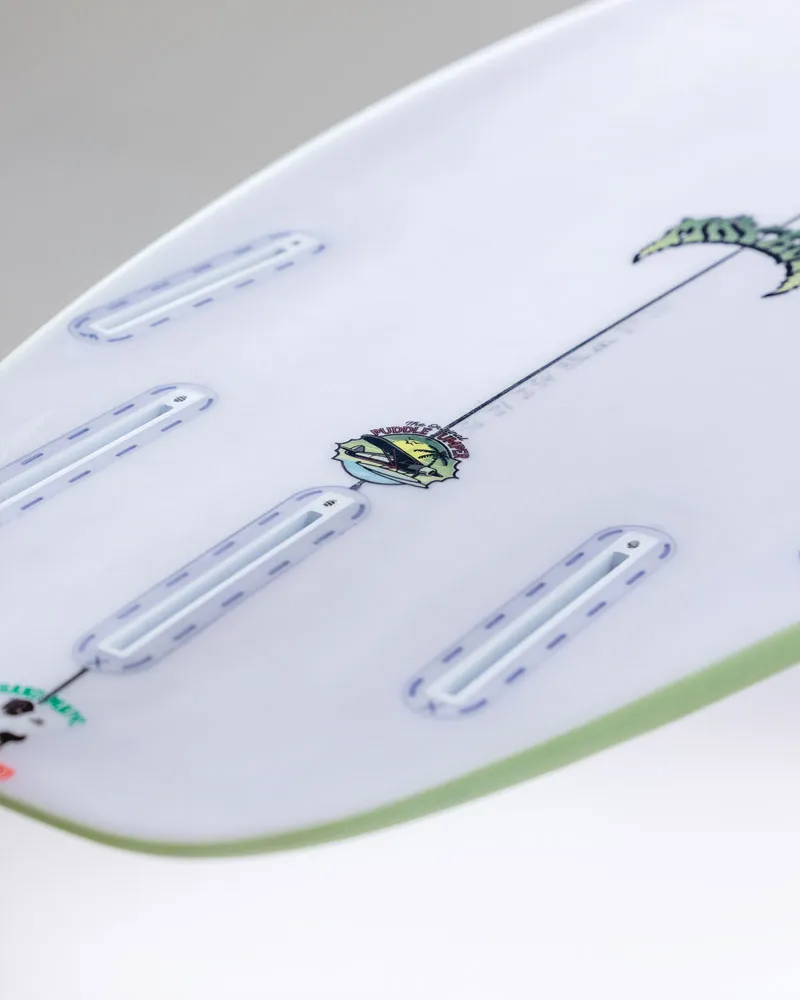 The Puddle Jumper is a con-caved, planing surfacer speeder. Domestic bliss with a twist. Based off the outline of the Bottom Feeder, but with reversed bottom and rocker curves. This board, unlike the past Domestic models (like The Bottom Feeder and RV) features a concave bottom that transitions to vee in the tail. The wide outline makes for easy wave catching and down the line glide and stability. The concave bottom adds lift and increased rail curve, which allows radical top to bottom surfing. The straight rail line and vee in the tail keep the board moving forward and hold in during hard carving maneuvers. “This is the most excited I have ever been about a small wave surfboard. Personally, it’s the best small wave board I have ever ridden. I have never made a claim like that about any board before” – Matt BiolosUnwanted products bought online can be returned open within 7 working days from the day after delivery. However, they must include all original packaging, be in as new condition and not used.
